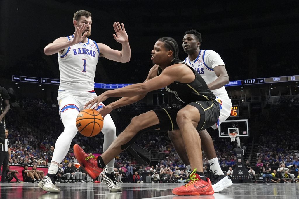 The Jayhawks blew a 13-point second-half lead, then had to rally once UCF pulled ahead with 7 minutes to go. The teams traded buckets down the stretch, and Ivy-Curry’s 3-pointer tied the game 83-all with 14.1 seconds left in regulation.