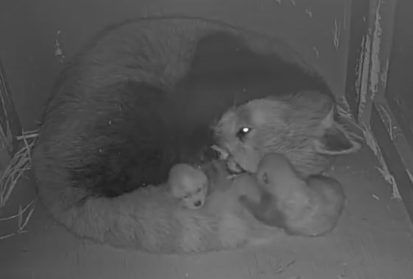 Lee Richardson Zoo is very happy to announce that Ember, the zoo’s ten-year-old female red panda, is taking care of two healthy cubs that were born on August 17.  Mother and cubs are doing well.  This is Ember’s seventh litter.