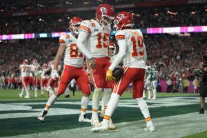 Professional Sports Mahomes throws a touchdown pass as Chiefs roll to 38-10 preseason win over the Cardinals August 20, 2023