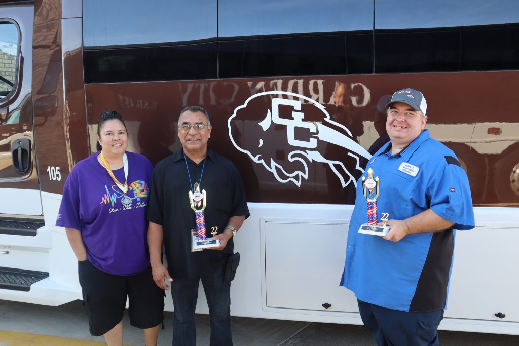 Garden City, Kan (WesternKansasNews.Com) – The Garden City Public Schools Transportation Department had eight school bus drivers participate in the Kansas State Pupil Transportation Association’s School Bus Rodeo Safety Competition held on June 1st in Salina, Kansas. Jerry Guerrero took first place in the Experienced Transit Driver Division, Andrew Herring took second place in the Rookie Transit Driver Division, and Liz Nunez received a medal for a perfect written score.