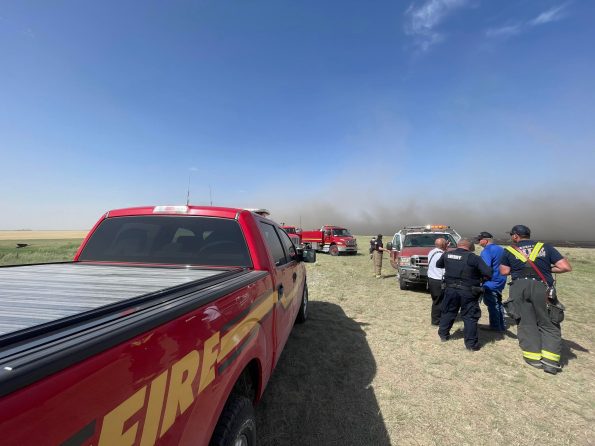 The Kansas Highway Patrol and Finney County Sherriff’s office started a search and evacuation around 2:30 PM as fire units continued to battle the blaze. The Kansas Department of Wildlife and Forrest Services responded to the scene as well as the State Fire Marshall. It was determined that a Combine Header was the initial cause.