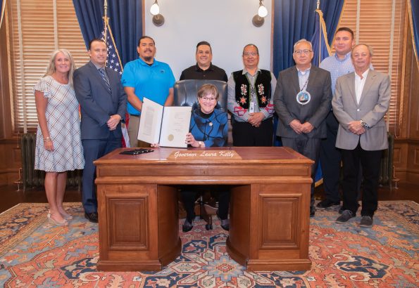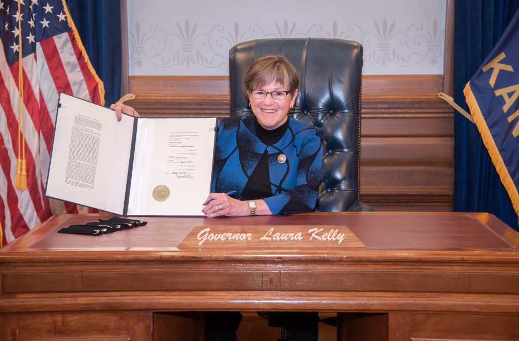 TOPEKA – Today, alongside bipartisan legislators and casino industry representatives, Governor Laura Kelly ceremonially signed Senate Bill 84 to legalize the act of sports wagering in Kansas. The bill also allows state casinos to use digital platforms and create sportsbooks. The ceremony took place at the Statehouse.