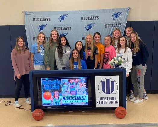 Cimarron, Kan. (westernkansasnews.com)–Going from being a Cimarron Bluejay to a Creighton Bluejay, McKayla Miller made it official on Thursday, signing her letter of intent to play basketball at Big East member Creighton University in Omaha.
