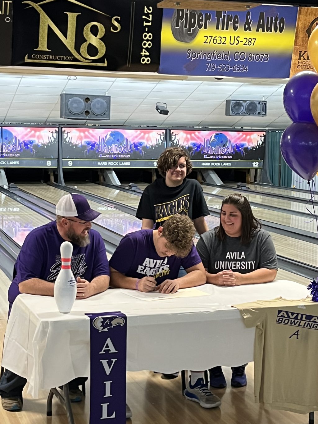 Garden City, KS (WesternKansasNews.com) – At Hard Rock Lanes on Tuesday night Garden City senior Garrett Messenger put the pen to the paper and signed with Avila University. Messenger signs with the NAIA University where he will bowl for 4 years in Kansas City. He is also a multi-sport athlete at Garden City and a leader on the bowling team.