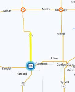 K-25 traffic will be reduced to one lane through the project area to allow for a project to recycle the existing asphalt pavement, followed by a chip seal. Motorists should be aware of delays of up to 15 minutes as one-lane traffic will be directed by flaggers and a pilot car through the work zone. The lane reduction will be marked by signs and cones. K-25 will be open to normal traffic when construction is not taking place.