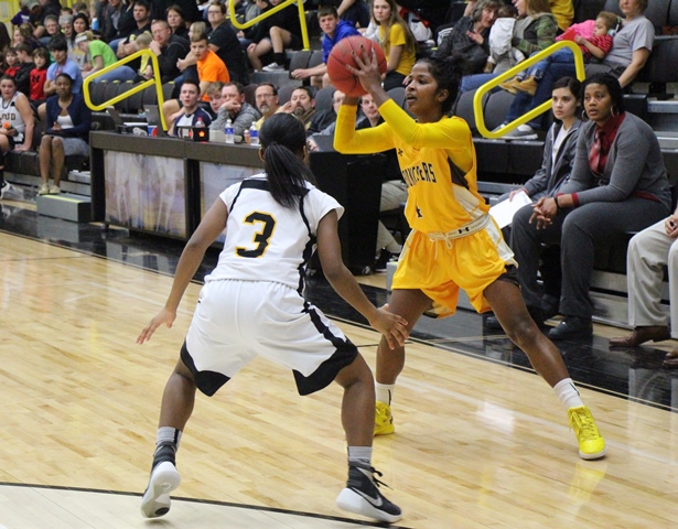 After Donasja Scott hit a layup to begin the contest, Kizart took the game over for Cloud County, scoring nine straight points to open up a 9-2 advantage. Erin Alexander followed with a layup, Darby Price completed a three-point play and Shannon Owens added a nifty hook to give the Thunderbirds a 20-9 lead after one.