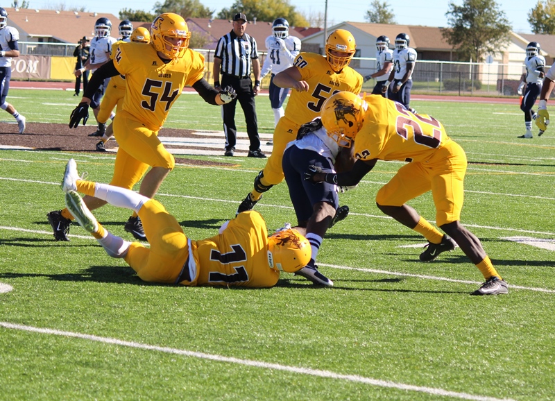 Meis and the defense overwhelmed the Tritons, holding them without a first down until their first series of the second quarter. To that point, Iowa Central had produced minus-28 yards of total offense. Over the final three frames, they totaled just 103.