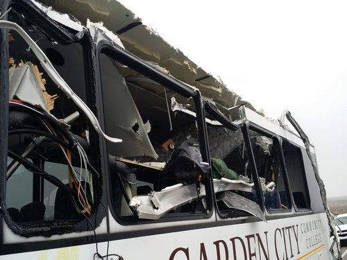 Liberal, KS (westernkansasnews.com) The bus taking the Garden City Community College Women’s Basketball Team to tonight’s game in Seward County was involved in an accident just a couple of hours before tip-off.  WKBC Sports Director Mike Pilosof was on scene and has this report.