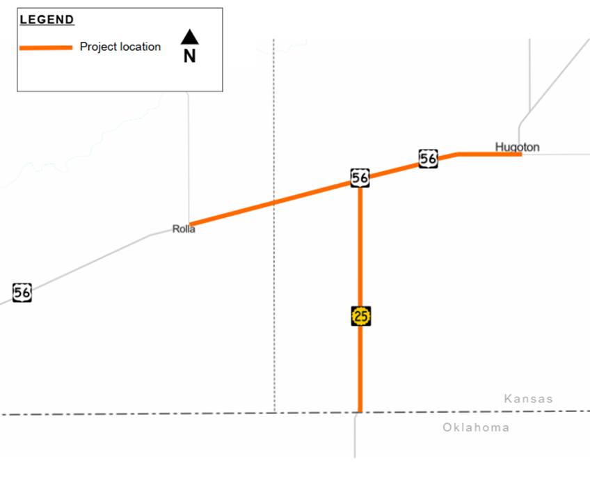 The Kansas Department of Transportation (KDOT) plans to start multiple chip seal projects the week of Aug. 25 along US 56 and K-25. The approximate locations of the projects are on US 56 from the city limits of Rolla east to the west city limits of Hugoton and along K-25 from the Oklahoma-Kansas state line north to the US 56/K-25 junction in Stevens and Morton counties. The chip seal project will seal minor cracks, delay further deterioration of the existing surface, and provide a new skid-resistant wearing surface.