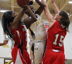 Marie Tsongui scored 14 points; Ashlyn Hoover added 13, and Howard held off a furious Garden City-rally to beat the Broncbusters 63-57 Thursday night.