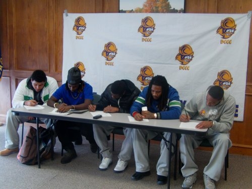 Dodge City, KS (westernkansasnews.com) Five football players from this past seasons 9-3 Dodge City Community College football team were on hand for signing day Thursday and officially declare their college of choice for next season.
