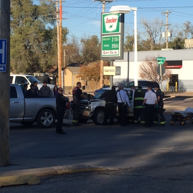 Garden City, KS (westernkansasnews.com) Police and first responders were called out to an accident at East Kansas and 5th Avenue shortly before 4 Monday afternoon. Upon arrival a mini-van appears to have rear-ended a pickup truck. An elderly woman was injured and put on a stretcher. No other information is available, but drivers are warned to take their time as officers direct traffic around the scene during rush hour.