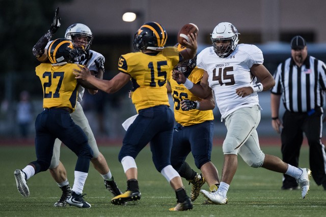 Garden City, KS-Garden City High School defensive lineman Demarcus Elliott was named to the Kansas Football Coach’s Association Top 11 team. He also landed on the Class 6A all-state first team with teammate David Arteaga.
