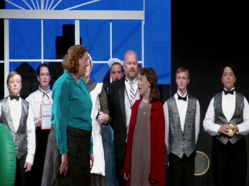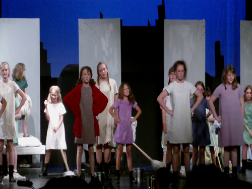 Young Carson Linenberger played Annie and in the end even the villain Miss Hannigan had a happy ending.  Amy Cain the actress in that role was purpose to by her boyfriend Gavin Mash.