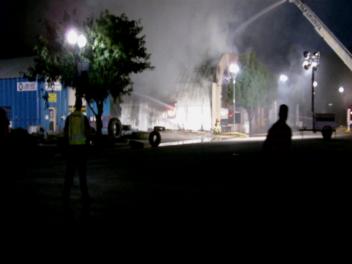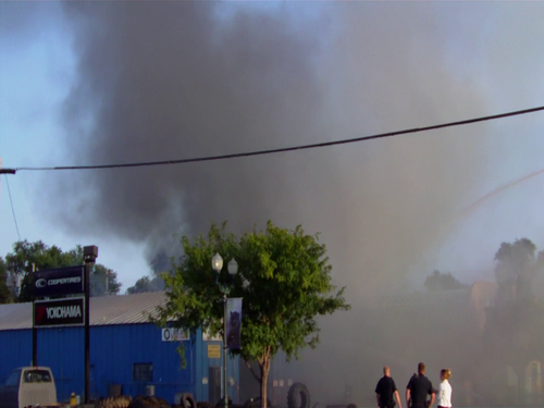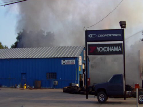 Garden City, KS (westernkansasnews.com) Firefighters were called out to a blaze shortly after 6 Sunday night at the Juaritos Tire Service and Balancing Garage on the 200 block of South Main Street.  No injuries were reported, but the building was surrounded in smoke as people came to watch from a safe distance. Smoke could be seen from miles away.