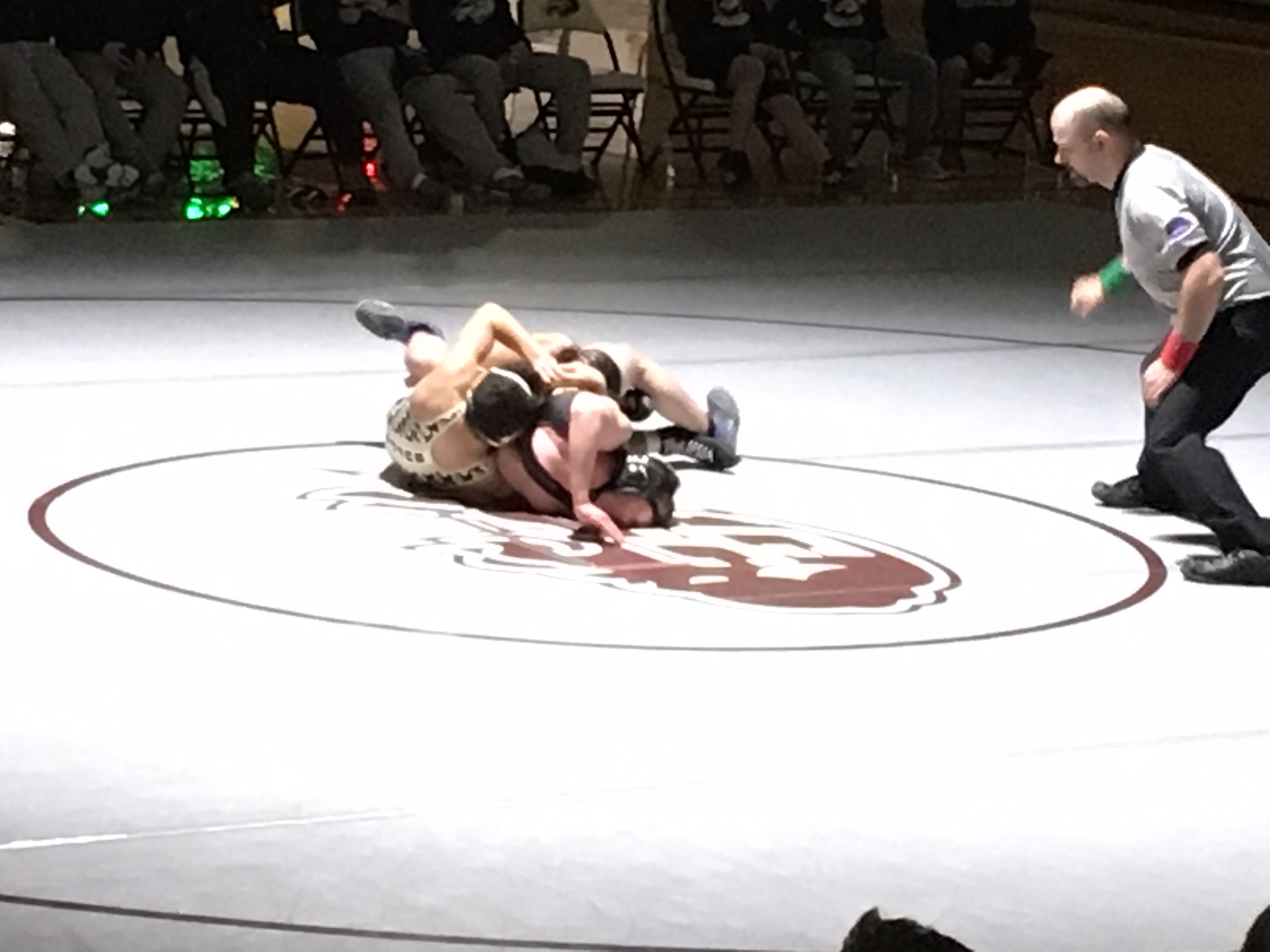 113: Silas Pineda, Garden City,won by fall over Grant Karlin, Hays, 1:30