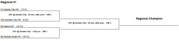 Baseball, who finds themselves slated as the #15 seed in the west bracket after a 6-16 regular season campaign, is situated in one of the tougher brackets for the 2025 regional tournament. The winner of the #2 vs #15 game (Campus and GCHS) will play the winner of the Washburn Rural and Wichita North (#7 vs #10) game for the right to advance to state. Last season, Garden City was felled in the first round of regional play against Manhattan at host Maize High School.