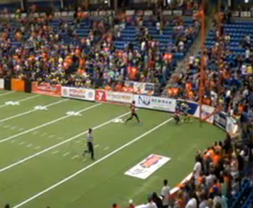Starting from their own 10 after a penalty on the kickoff backed them up, disaster almost struck when Floyd’s screen pass was nearly intercepted by Jason Catchings. The ball caromed off the chest of the Wild Linebacker giving Dodge City another chance. Floyd made them pay on the very next play when he hit Maurice Young in stride on a perfect 40-yard touchdown pass that gave Dodge City a 31-30 advantage with 49 seconds left.
