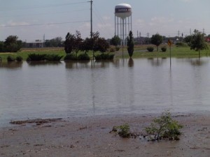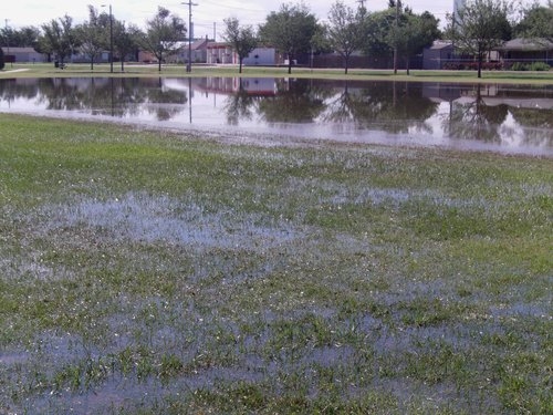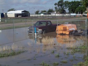Finney County Emergency Management Director Michael Paz-Torres says he received reports on a couple of homes that flooded, but other than that Garden City had only minor damage. There were several areas on the road from Garden City to Holcomb where warning signs told drivers to beware of standing water. Holcomb’s Community Park had a big pond left over from the heavy rains.