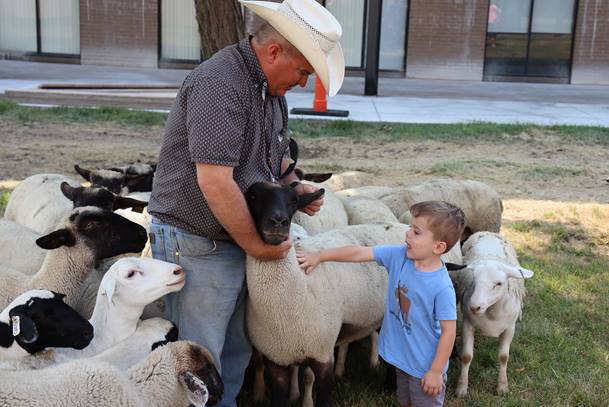 On Wednesday, June 23, 47 Dodge City area children enjoyed a special Summer Storytime at the Dodge City Community College (DC3) Library. Because the day’s featured book, which was “Piggy: Let’s Be Friends!,” had an animal theme, David McCollum, DC3 Professor of Animal Science/Ag Business (left), brought his dogs and a small flock of sheep to interact with the kids. Hosted by the DC3 Library every Wednesday through July 28, at 10 a.m. and 2 p.m., Summer Storytime is a free program where kids get to hear a book read aloud, enjoy a snack and activity, and then go home with a free book. Summer Storytime is made possible by the DC3 Foundation and the Communities Supporting Early Literacy Grant, which is funded by the Kansas Health Foundation. [Photo by Lance Ziesch]