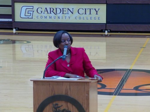 An uplifting message of Doctor Martin Luther’s life and vision was shared with students at Garden City Community College today during their annual observance. Giving the keynote address was Angela Ray an accomplished actress, author and motivational speaker.