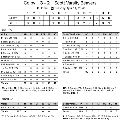 Colby 3, Scott City 2, Game 2 (11 Inn.)