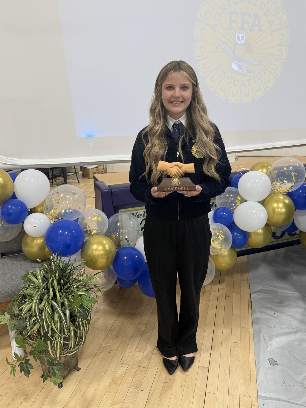 Scott City Kan.–The Southwest District FFA selected Kamryn Meyer, a Junior at Scott Community High School to serve as the Sentinel for 2025-2026. Meyer is one of six Southwest District FFA members who will serve on the District Officer Team. The team was announced at the Southwest District FFA Banquet on April 14, 2025 in Ingalls.