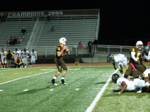 Offensive mistakes killed Garden City all night including on the Busters third offensive possession. Facing a 3rd-and-five from their own 29, Curran completed a pass over the middle to Brandon Snell. But when the freshman tried to shake out of the grasp of Brandon Lockwood, he lost the football, which was scooped up by Pat Martin, who raced 30 yards to the end zone for a touchdown. Josh Pasley’s extra point made it 7-0 Highland with 4:50 to play in the opening quarter.