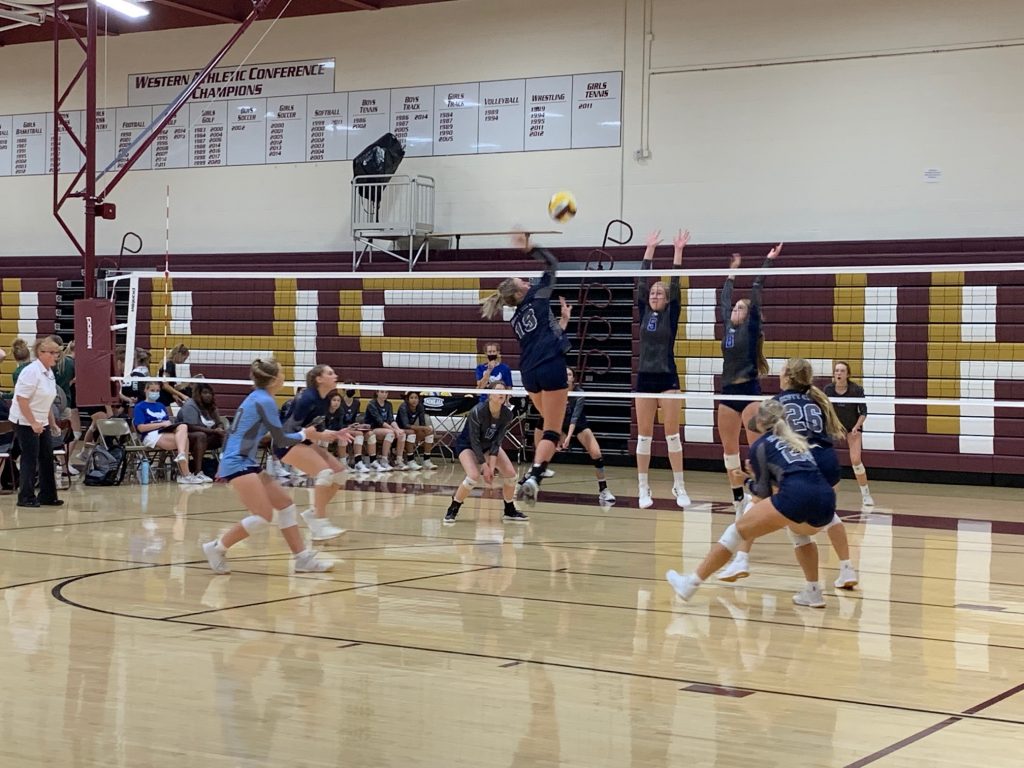 The championship match would see Scott City take on 6A Olathe West. It would be the first three-set match of the young season for the Lady Beavers. The Lady Owls had no issues in the opening set, as they took the first set 25-5. Scott City would be a different team to begin the second set, scoring three of the first four points. They trailed 7-5, before a 9-1 run put them up 14-8. However Olathe West flew back into the set, going form down 16-10, to finding themselves up 21-20 late in the second period. After Kennedy Holstein’s kill tied the set at 21, she would serve up four consecutive aces to help the Lady Beavers force a third set with a 25-21 win. The Lady Owls trailed early 2-1 in the third set, and they would use several big runs to take a 25-9 third set, winning the tournament title. Kennedy Holstein had four kills and four aces in the championship match to go along with two point blocks, while Brooklynne Zielke and Ella Rumford had three kills.
