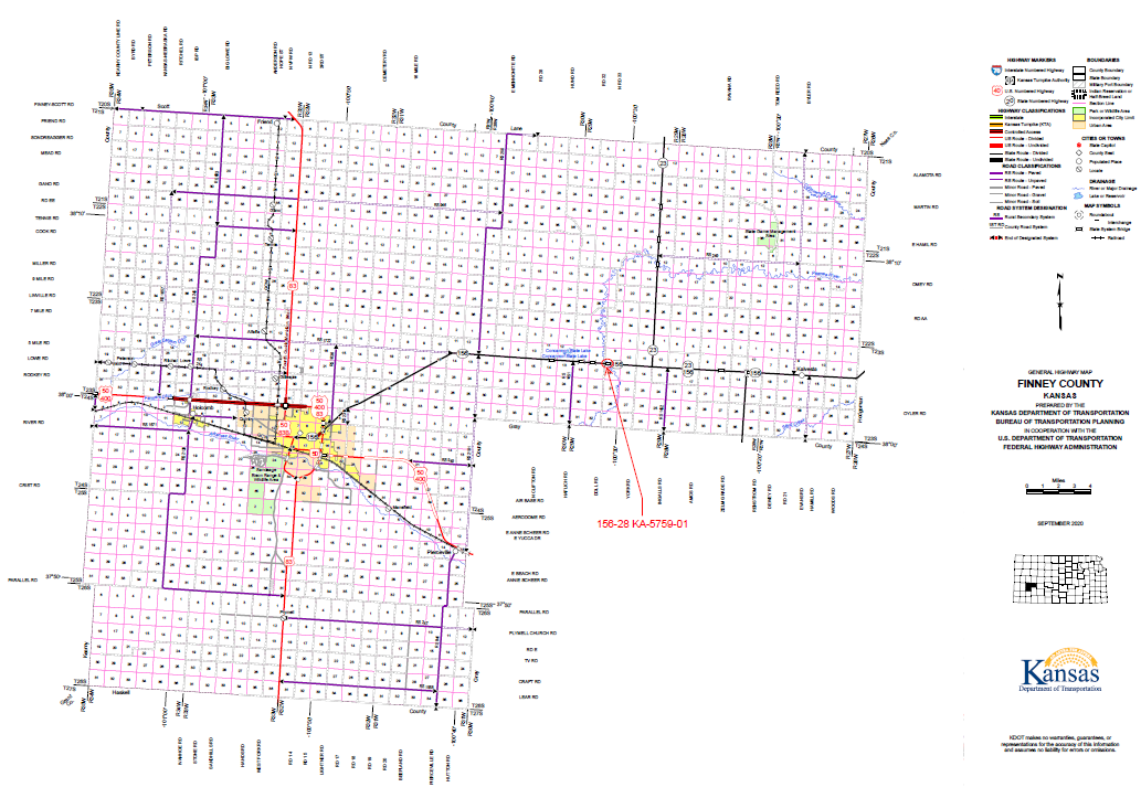 The area being surveyed includes the Pawnee River Drainage bridge located on K-156 approximately three miles west of the west K-156/K-23 junction.