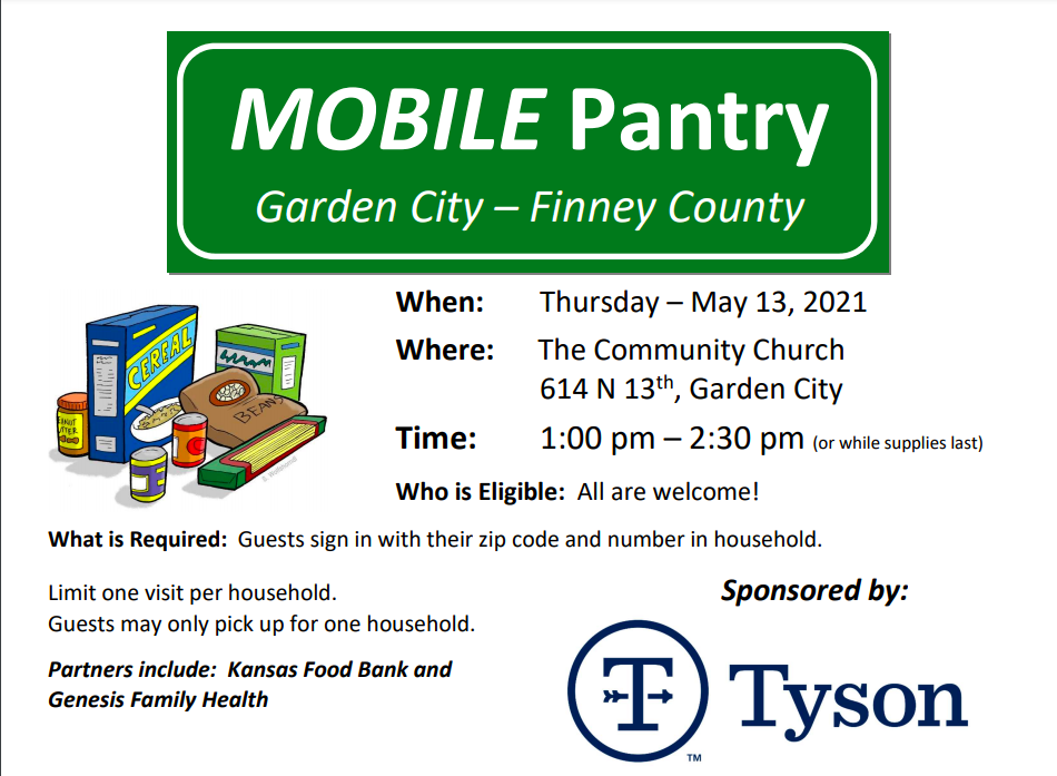 WICHITA, Kan. – May 5, 2021 – Tyson Foods has awarded an almost $92,000 grant to the Kansas Food Bank to fund mobile pantry distributions in Emporia and Garden City, Kansas.