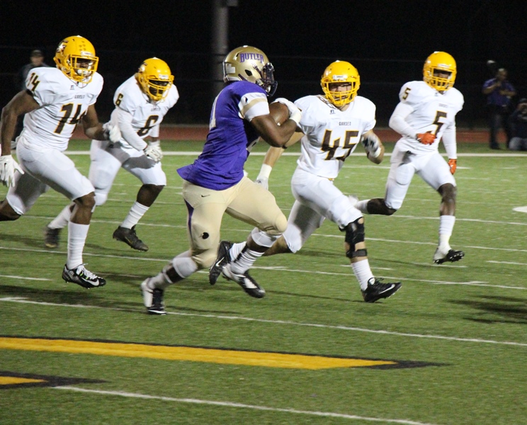 On their ensuing drive, Porter put Garden City on his back, connecting on all four of his passes for 30 yards. His final completion went to Felton Hatcher for 16 yards down to the Butler 14. On the very next play, it was Porter calling his own number; sprinting around right end and willing his way across the goal line-giving Garden City a 19-13 lead with 6:30 remaining in the third.